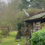 - héron scrutant les poissons du jardin d’eau